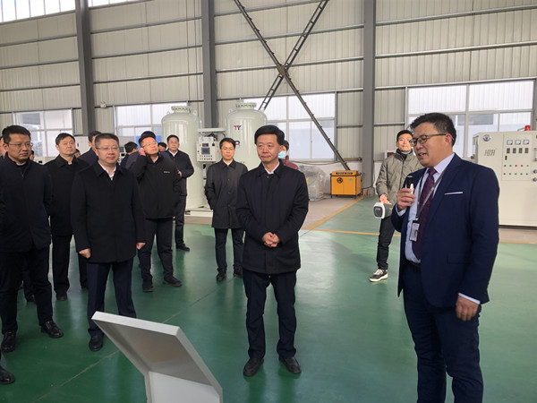在参观过程中,总经理张亮先生就公司制氧机,制氮机产品、性能、发展及未来规划等多方面向考察组进行了系统而全面的介绍。